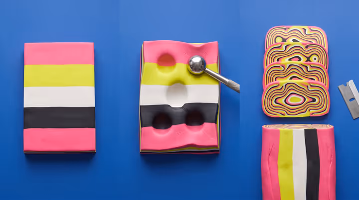 2 focused reads on slab building for polymer clay makers. 2 focused reads on slab building, including Polymer Clay Mokume Gane: Reduction, Distortion, and Slicing and Polymer Clay Pixel Slabs, Stepped Layers, and Mirrored Pairs. Each article names the technique, the materials, and the decisions that change a saved image into a piece you can finish on your own bench.