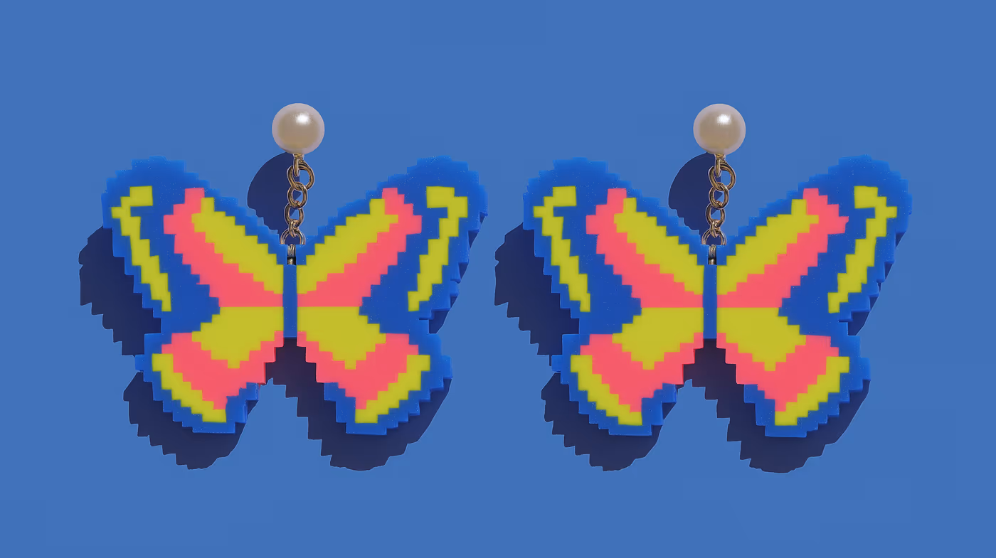 Navy, cobalt, and sky blue earring designs. Cool-toned wearables with build context.