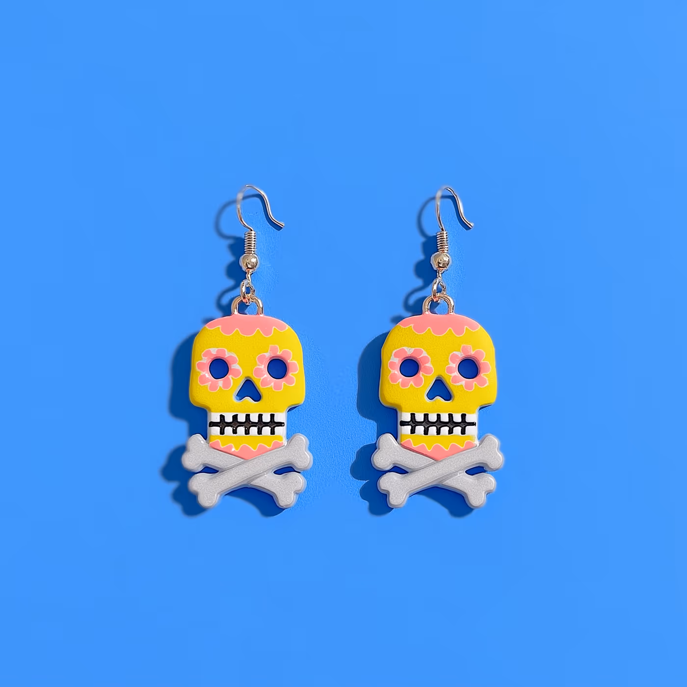 earringsskullcrossbonessugar-skullyellowhot-pinkwhitehook-earrings