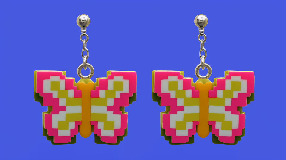 Magenta, Yellow, and White Pixel Butterfly Earrings