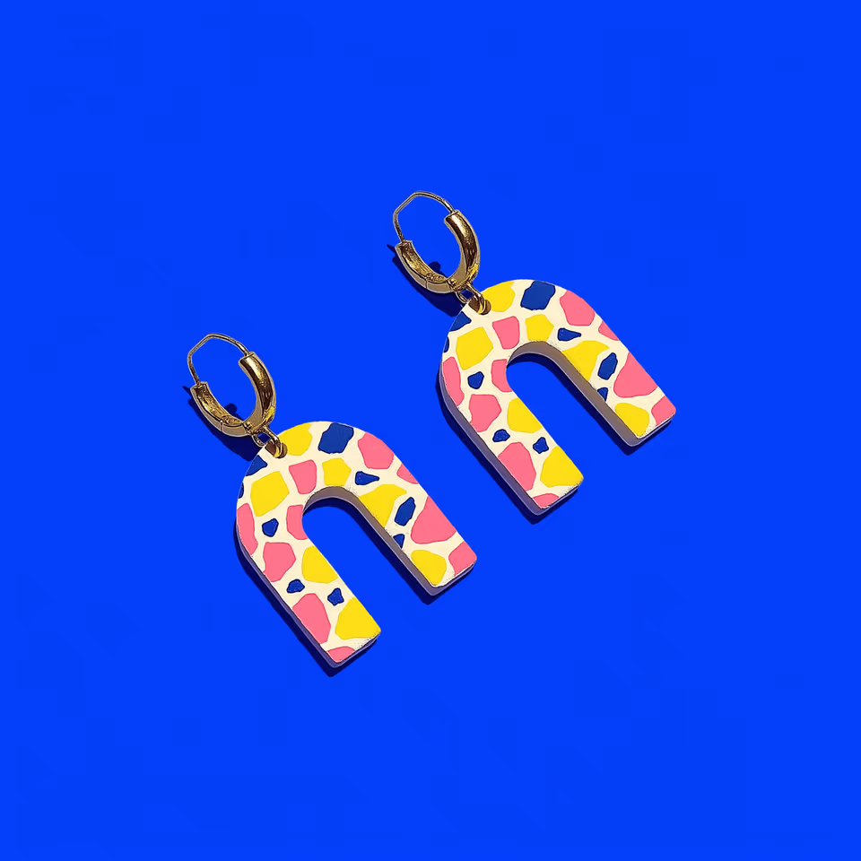 Terrazzo earrings read most clearly when the chip size, chip density, and base color are settled before you cut the final shape. This guide covers chip prep, compression, and how to keep arches and tiles crisp.